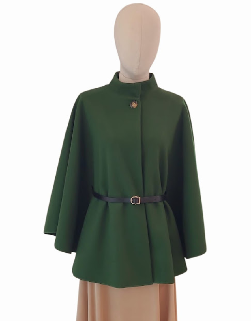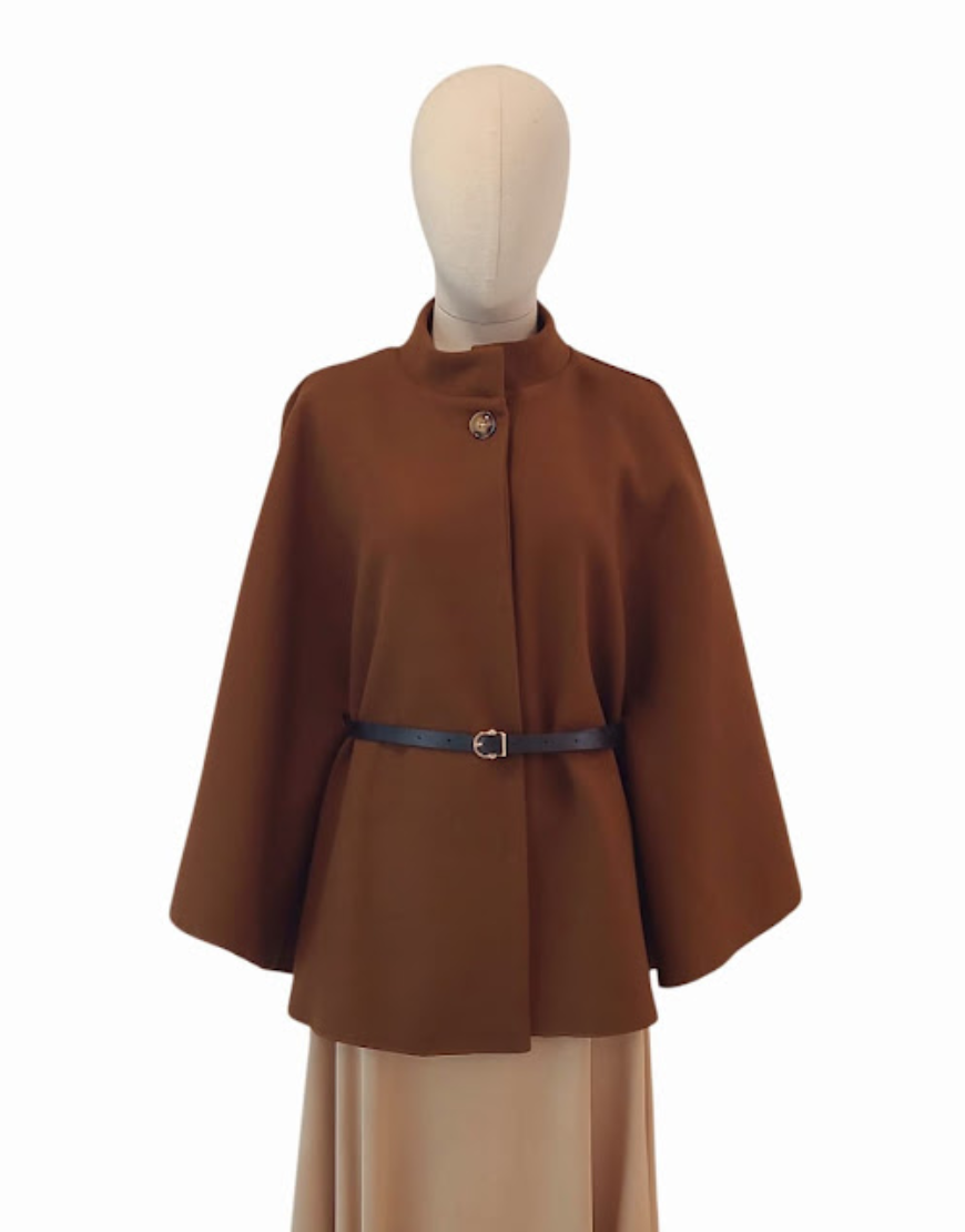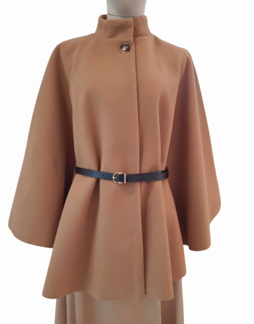 Capa de mujer  corta con vuelo pero ajustable con cinturón.