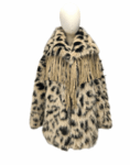 Chaqueta de pelo sintético con estampado animal print y detalle de flecos.