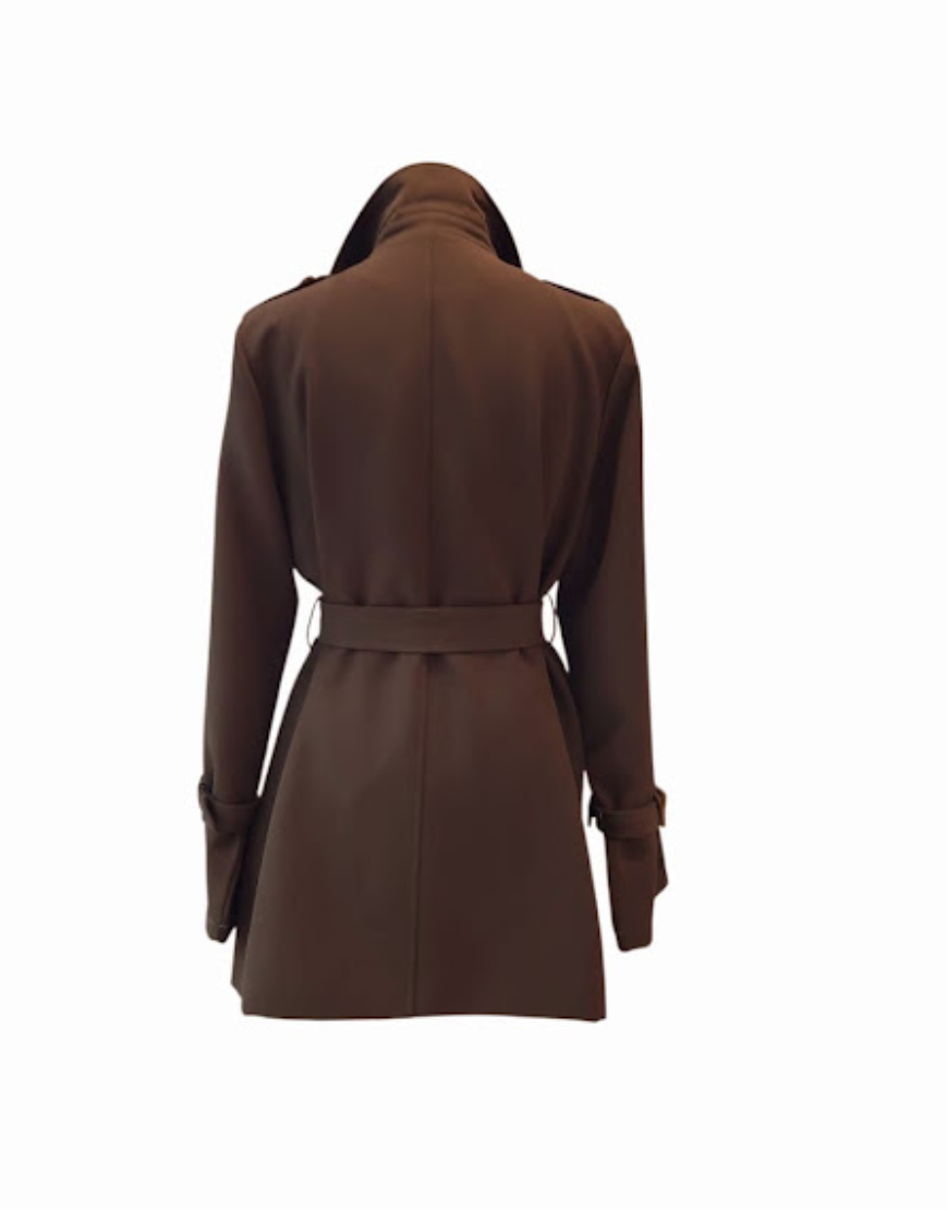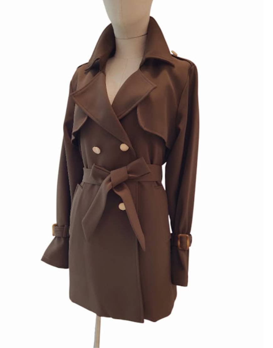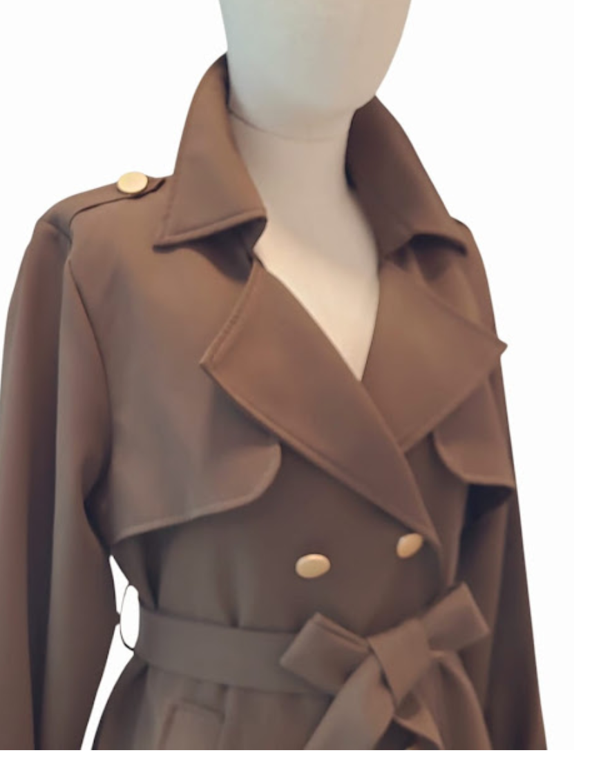 Prenda atemporal con cinturón, botones dorados y hebillas en los puños que le aportan un toque de elegancia, ideal tanto para looks de oficina  como para un estilo urbano chic.