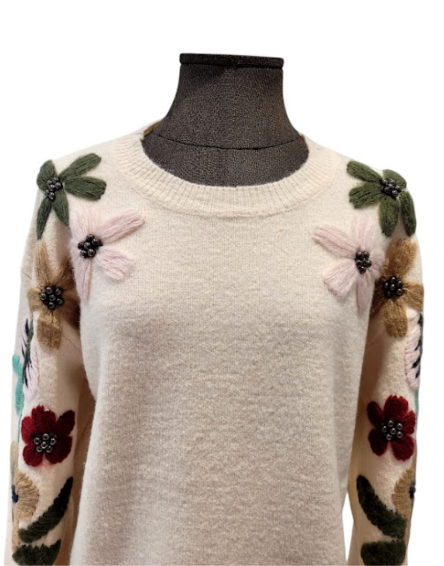 Jersey con flores bordadas en relieve. Tejido suave, cálido y con un diseño romántico ideal para el invierno.
